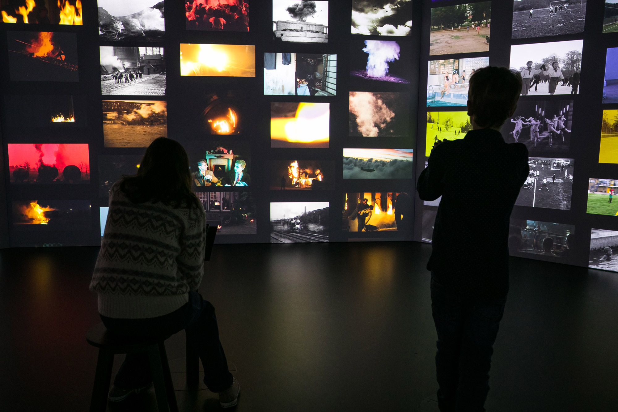 Users interacting with the Film Catcher installation at the Eye filmmuseum.